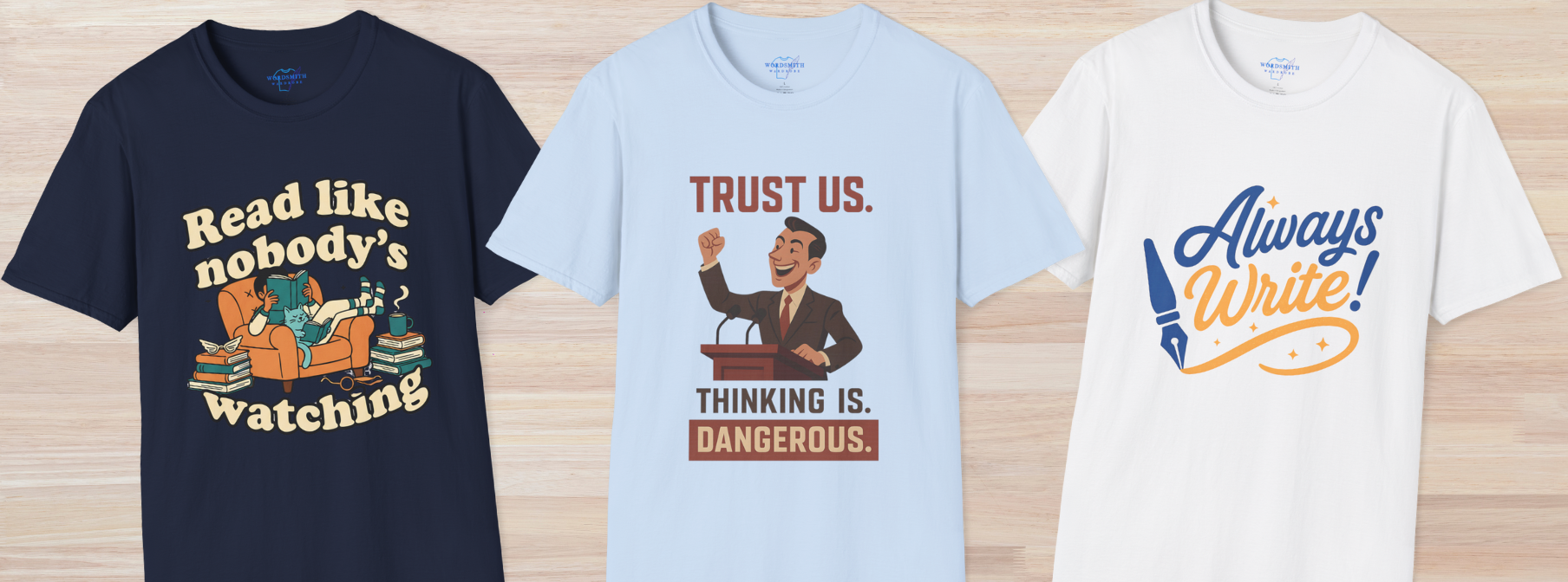 We pride ourselves on having the best customer service possible! If you have any questions, or any issues arise, please feel free to reach us at support@WordsmithWardrobe.com